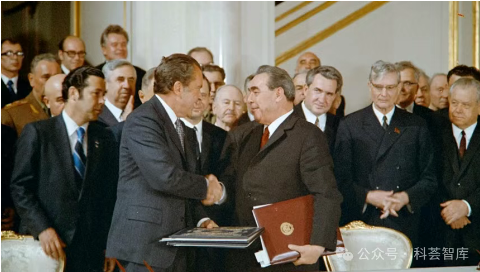 苏共中央总书记勃列日涅夫与美国总统尼克松签署《第一阶段限制战略武器条约》(1972年)