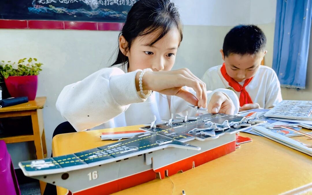 课堂特别设计趣味问答与互动实践环节。问答环节,学生们踊跃举手抢答、主动提问;船模组装实践环节,志愿者手把手指导学生对照图纸拼接零件,当一个个船模成型时,孩子们脸上满是收获的喜悦,不仅直观掌握船舶构造原理,更在动手过程中筑牢国防意识。此次志愿服务播下的“深蓝种子”,或许将在未来生根发芽一一有人可能成为海军战士、有人或许成为工程师……我们志愿路,也将沿着澜沧江脉络,延伸向更远的远方。